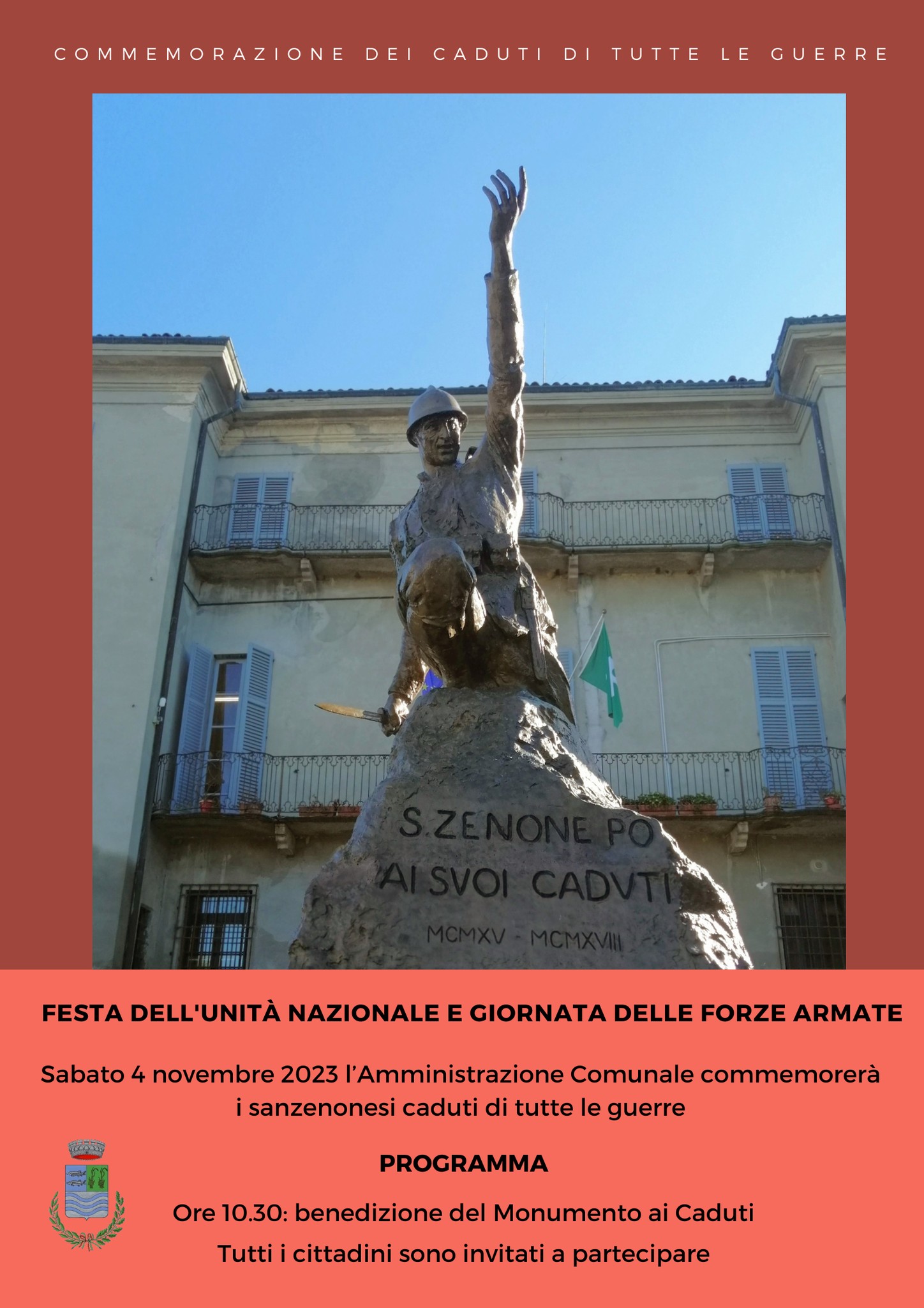 sabato 4 novembre ricorre la Festa dell'Unità Nazionale e la Giornata delle Forze Armate.