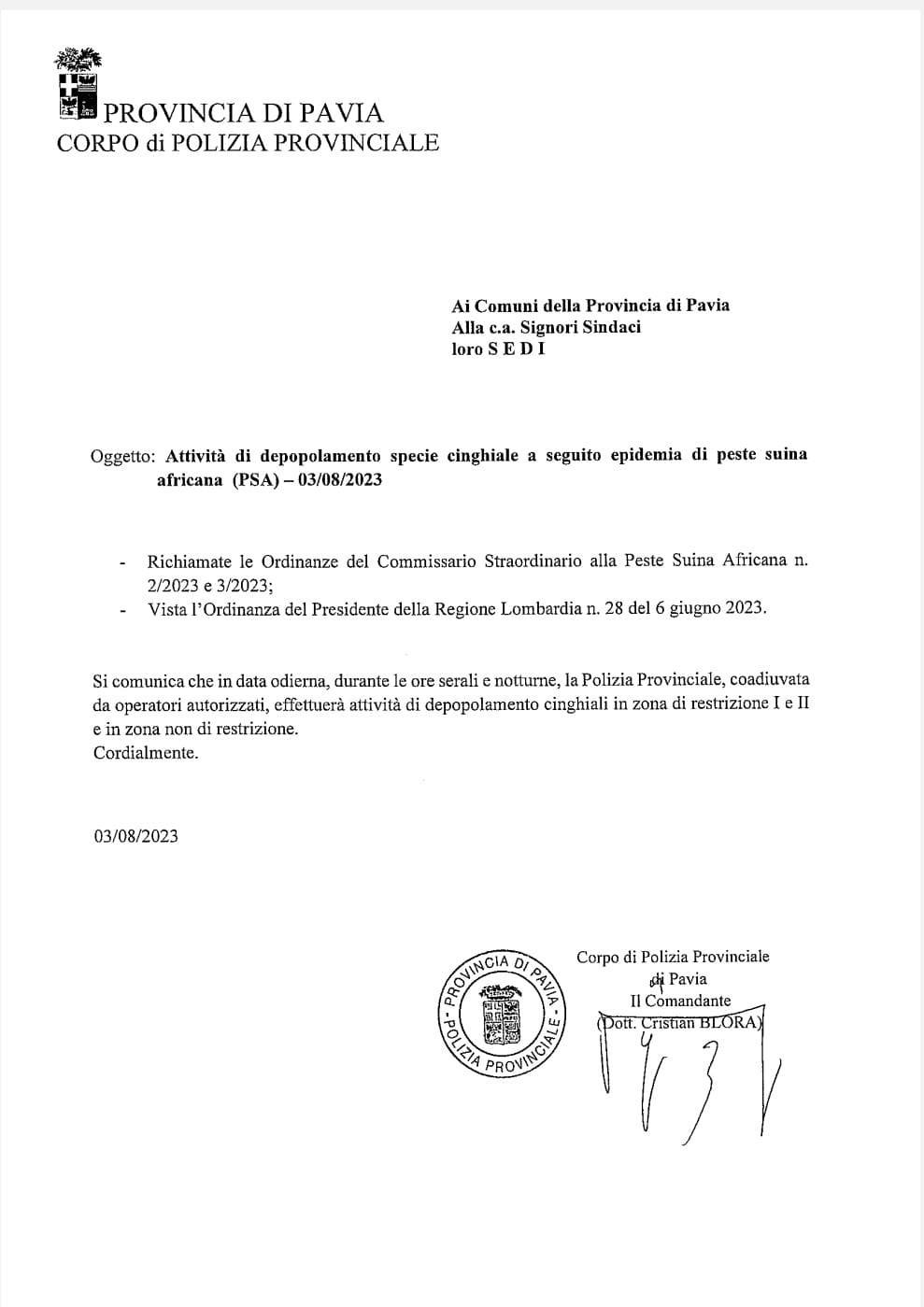 Informiamo i cittadini della possibile esecuzione di battute di caccia in golena a seguito delle Ordinanze citate nel documento in allegato.